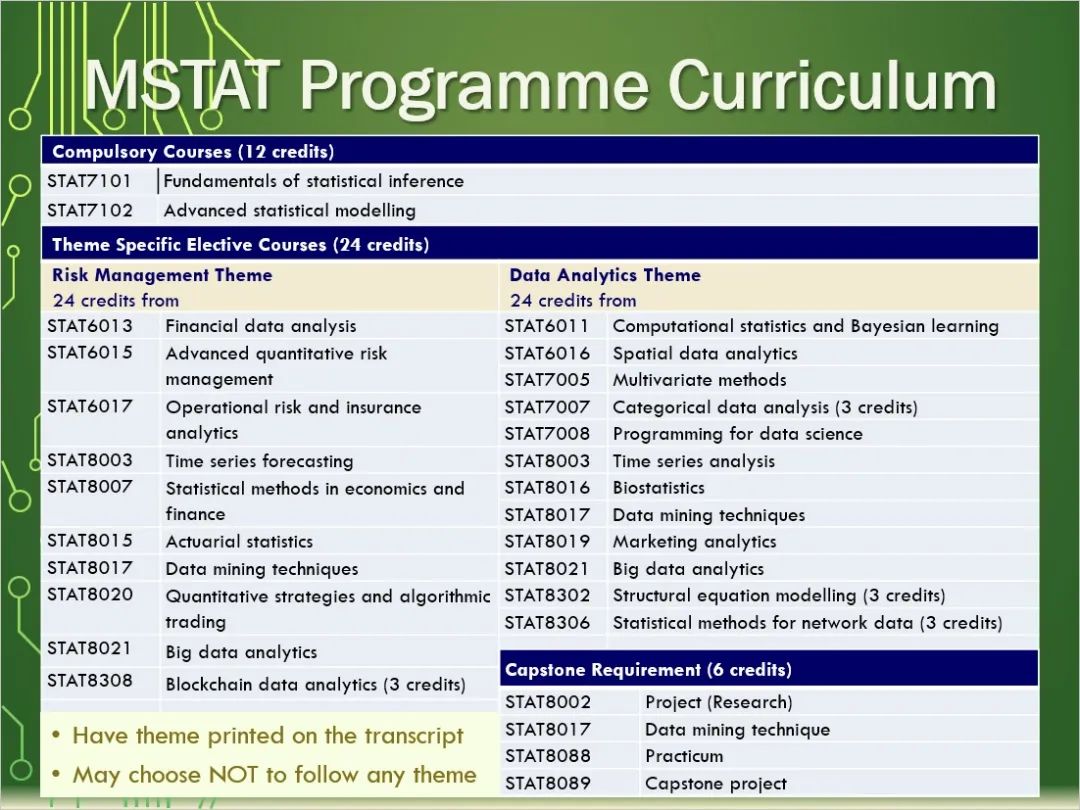 可选Risk Management(风险管理)或Data Analytics(数据分析)两个不同方向,丰富多样的选修课
