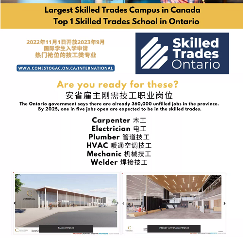 安省劳工就业培训技能发展部部长Monte McNaughton访问 Conestoga College木工中心(北美最大的木工中心) ,专程宣布政府对技工类专业的投资,以满足安省市场对熟练技工的大量需求。Monte部长说:”我们目前的任务是弥补安省的技工人才缺口,每天都有超过18,000岗位空缺。安省政府为Conestoga投资920万加元,2020-2021年为21个行业提供专业证书培训课程。Monte部长说:”在未来五年内,预计安省将有大约五分之一的毕业生从事与职业技能有关的工作。我们希望培养更多的人才,提供所需的专业技能课程,帮助企业找到合适的人才。”