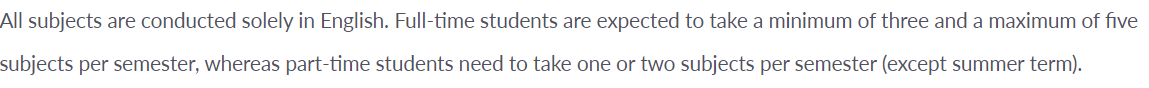 课程设置:所有科目均仅以英语讲授。全日制学生每学期须修读最少三科及最多五科