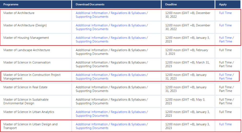 近日,香港大学建筑学院的五个专业开放申请!具体如下: