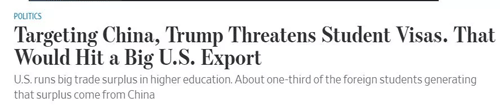 “川普限制留学签证,针对中国!会对出口经济造成影响”
