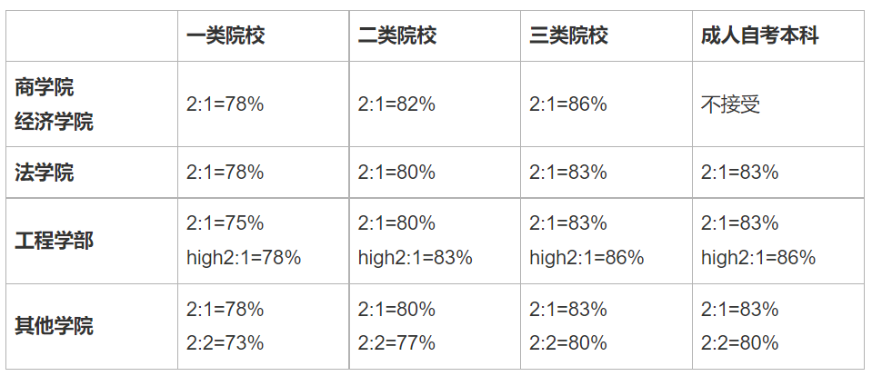 5、如果学生的本科学位是 中外合作项目(3+1) 我们会要求学生的中外两份成绩均符合要求,即国内成绩符合我们对国内院校的分数对应要求,国外成绩符合我们对英同等要求(比如2:1/2:2)。如果通过 2+2项目 在英国就读两年时间,则不需要国内段成绩单。