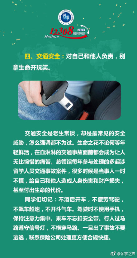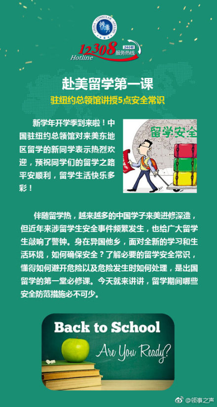身在异国他乡,安全第一,出国留学第一课应是掌握必要的安全常识。以下5条虽是老生常谈,但需牢记心间!祝同学们的留学生活丰富多彩、平安顺利~