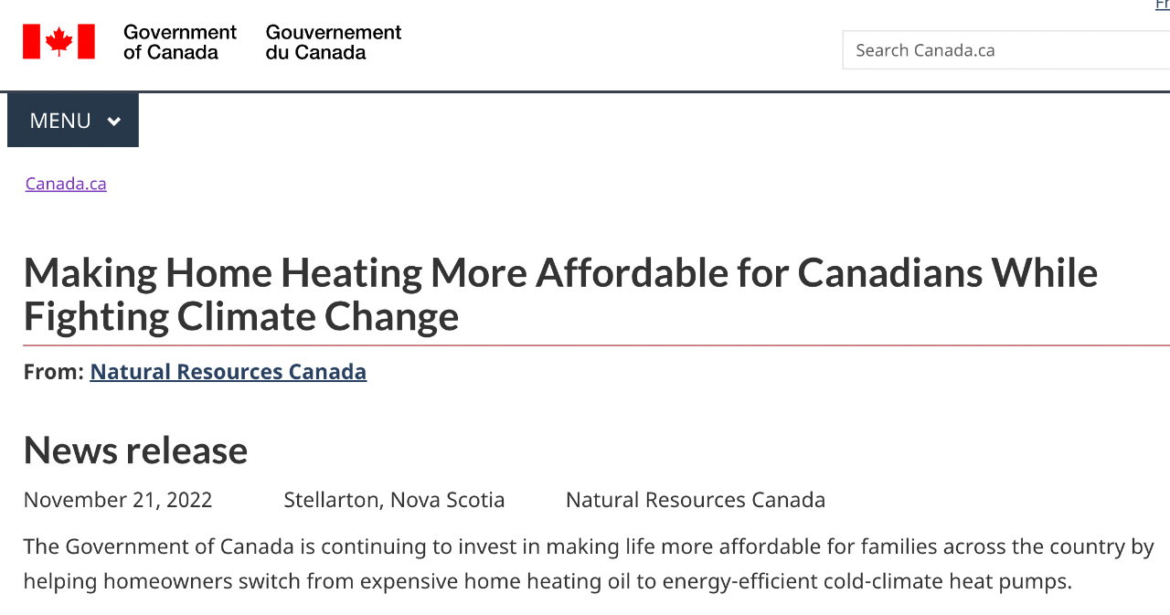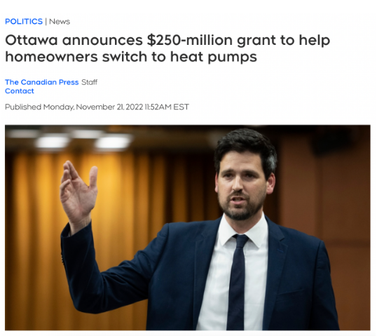 联邦政府正式宣布了一项2.5亿加元的拨款计划,以帮助加拿大人停止使用heating oil并改用电热泵。