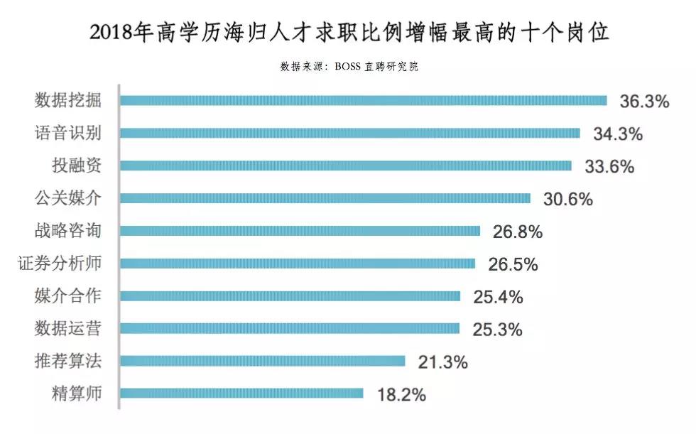 在BOSS直聘发布了《中国海归人才就业选择报告》中,根据报告显示, 2018 年上半年,应届海归平均期望薪酬为 9881 元,中国在人工智能、金融科技、移动互联网等新兴领域正吸引着大量海归人才。
