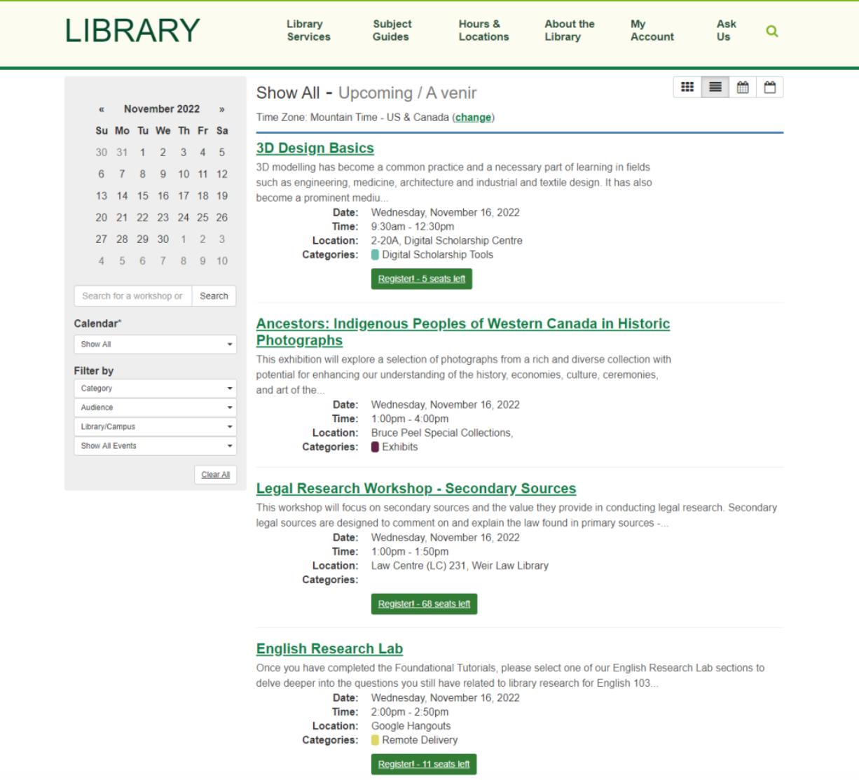 图书馆主题研讨会的活动非常丰富,并且可以按日期进行筛选,如图:
