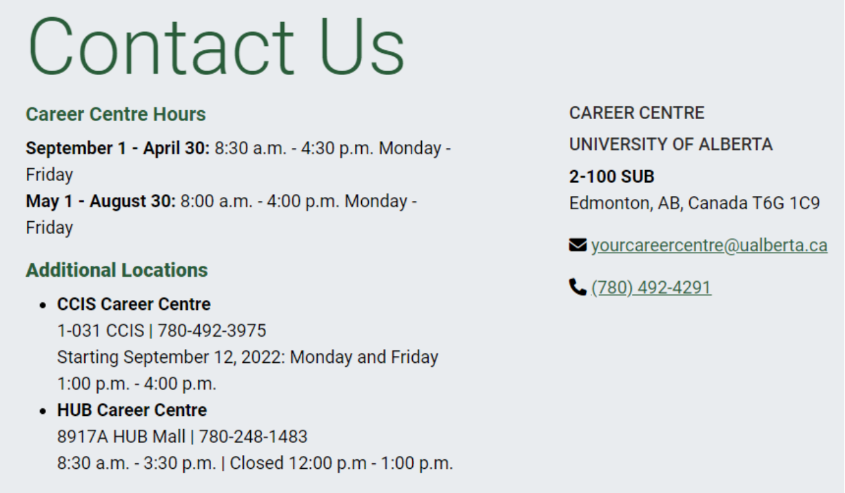 阿尔伯塔大学的职业指导中心为有才华的人提供合适的机会。它们的职位有实习、永久、临时和暑期全职和兼职的职位。我们的职位向所有当前学生、博士后和校友开放。每天都有来自当地、国内和国际雇主的新职位发布。