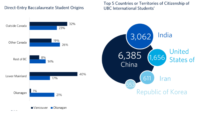 就直入录取的学生来说,温哥华校区的留学生比奥肯纳根校区要多一些。