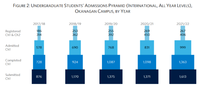 奥肯纳根校区的留学生申请人数增长了1%,留学生录取人数增加了8%。