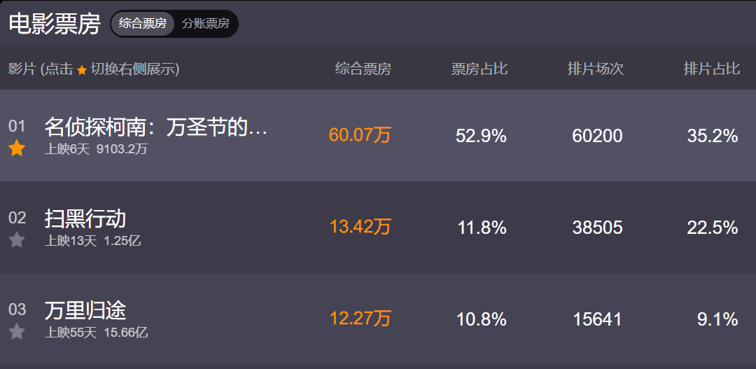 以今年的柯南剧场版为例,截至11月24日, “万圣节的新娘”上映不到一周,票房已逼近1亿;
