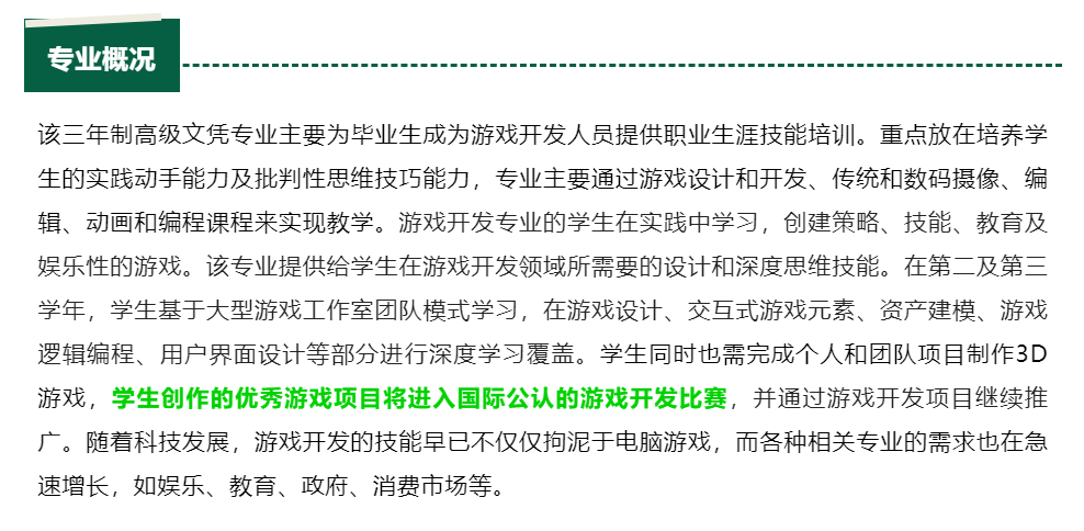 > 亚岗昆学院游戏开发专业介绍