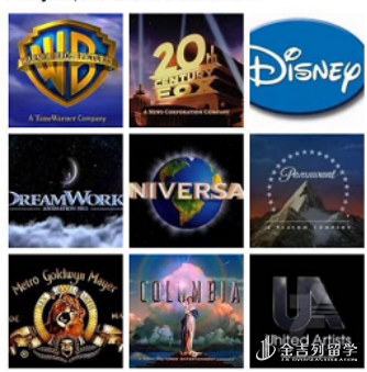 那么如果想走上专业话的道路,除了就读国内的院校,出国学习电影专业也是一个非常棒的选择。不同国家在电影专业也体现出不同的优势。例如加拿大是一个发展速度很快的电影拍摄地。法国有高等国家影像与声音职业学院,波兰有罗兹电影学院,英国有先进的动画产业。但是按照专业水平,学校选择,人脉优势,就业机会等等因素来排名的话。美国无疑是排在第一位。就从工业的角度讲,美国的电影工业发达程度也是已经可以埤堄其他国家。戴老师举最简单的例子,全球十大电影公司都是美国的电影公司。看看如下的图片,你是不是会觉得很熟悉呢?