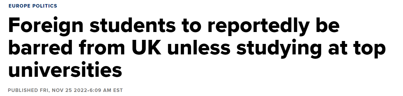 根据当地时间10.25号的新闻,英国信任首相苏纳克计划削减留学与移民数量。除非获得英国一流大学的录取资格,否则学生很可能会被限制,除此之外,所有留学陪同的家属入境英国也可能会被拒绝入境。