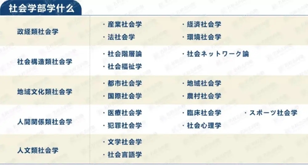 社会 ・ 福祉学关系 :以探究社会的构造与劳动及保障的存在或理想方式,以社会及生活福祉与心理福祉为主,福祉心理 , 医疗福祉及福祉计划等都是应社会背景发展的新兴学科。国际关系学关系:以国际化的视野把握和探究现实社会动向的学科。以多元化的角度从政治 , 经济 , 社会 , 文化 , 法律 , 历史等角度全方位把握世界格局。