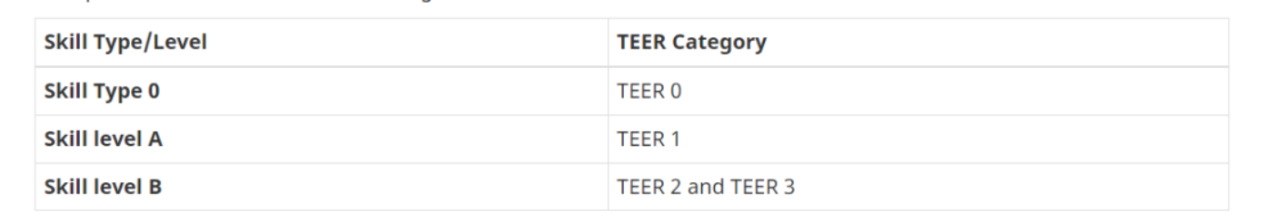 TEER还是会通过教育,培训,经验,和职责四个方面重新对每个职业的技能水平进行定义。