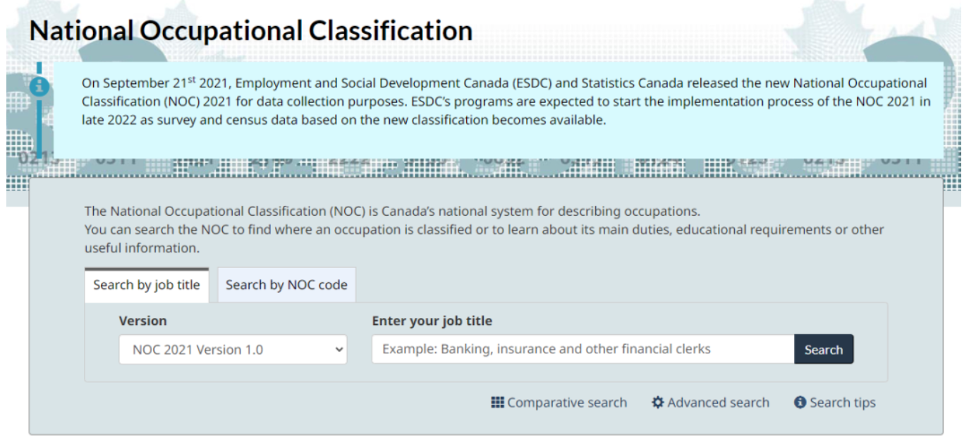 搜索National Occupational Classification,进网页后你可以看到两种搜索方式。