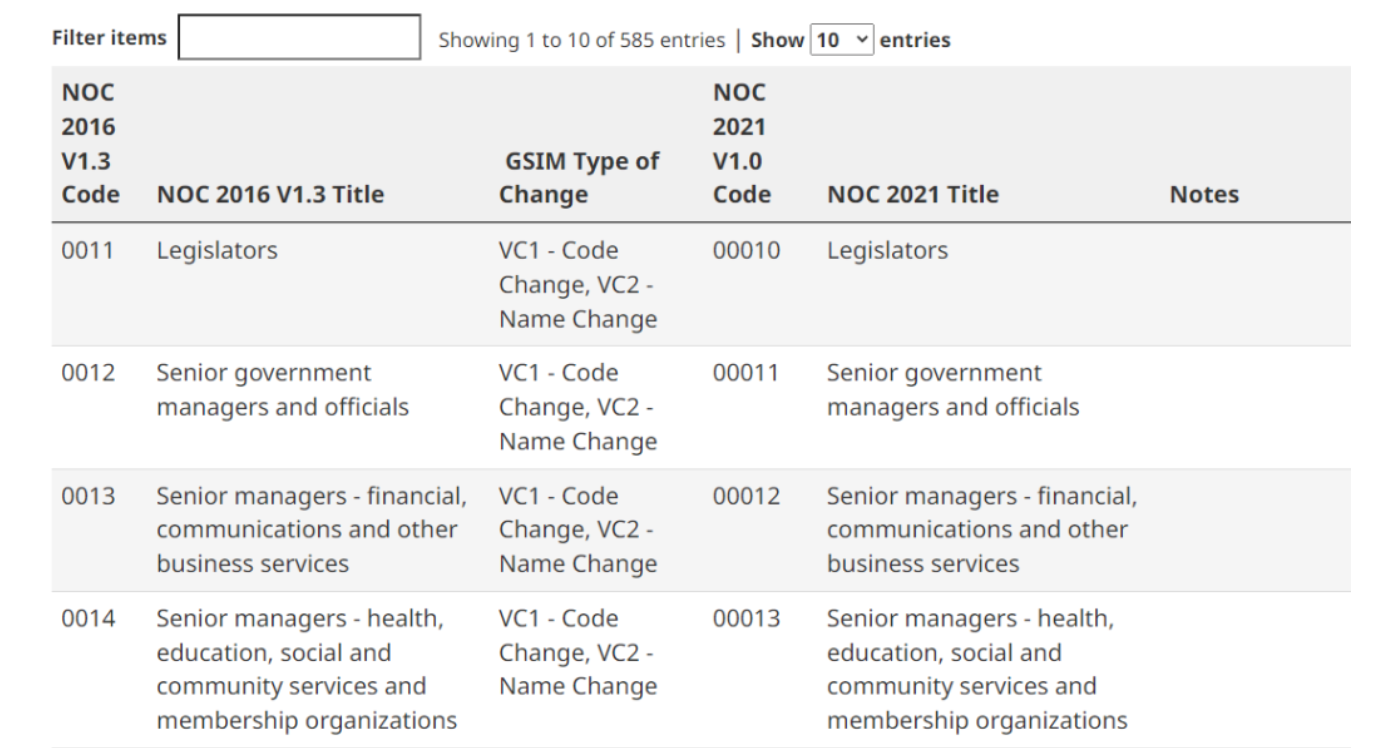 大家可以搜索Correspondence Table: NOC 2016 to NOC 2021