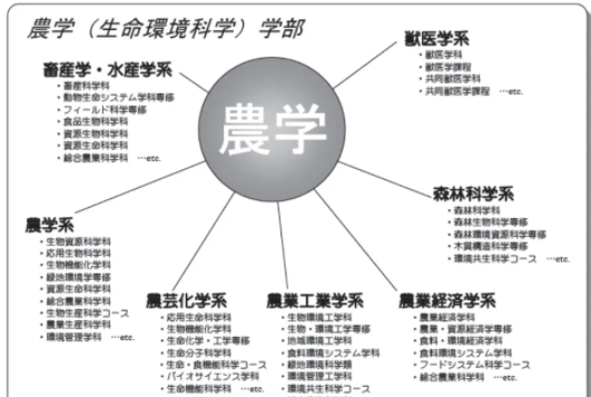 农学关系:驱使生物技术不断发展的学问。包含园艺和造园学科在内的综合农学学科以及应用生物学科。