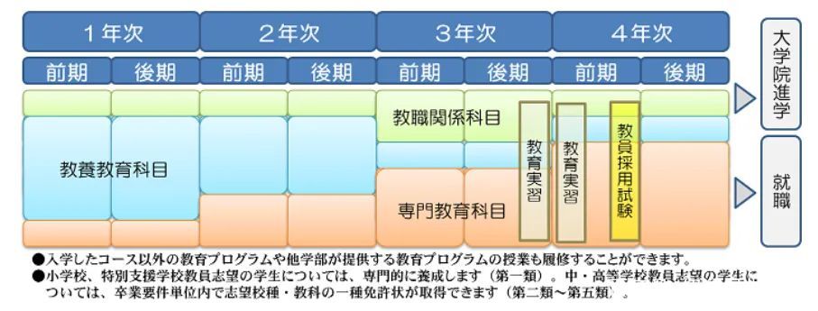 教员养成关系:以支撑学校教育的优秀教师培养学科。专注于小中高阶段优秀教师的培养,并可以取得各阶段教育免许资格的学科课程。