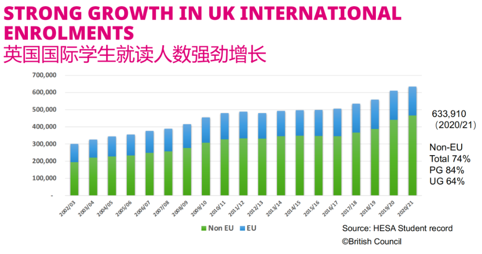 的确,像新闻中提到的,疫情后留学生人数出现了暴涨,但其实中国学生赴英留学始终保持 稳定的增长 ,根本不是这次的“罪魁祸首”, 不会受到巨大冲击 。