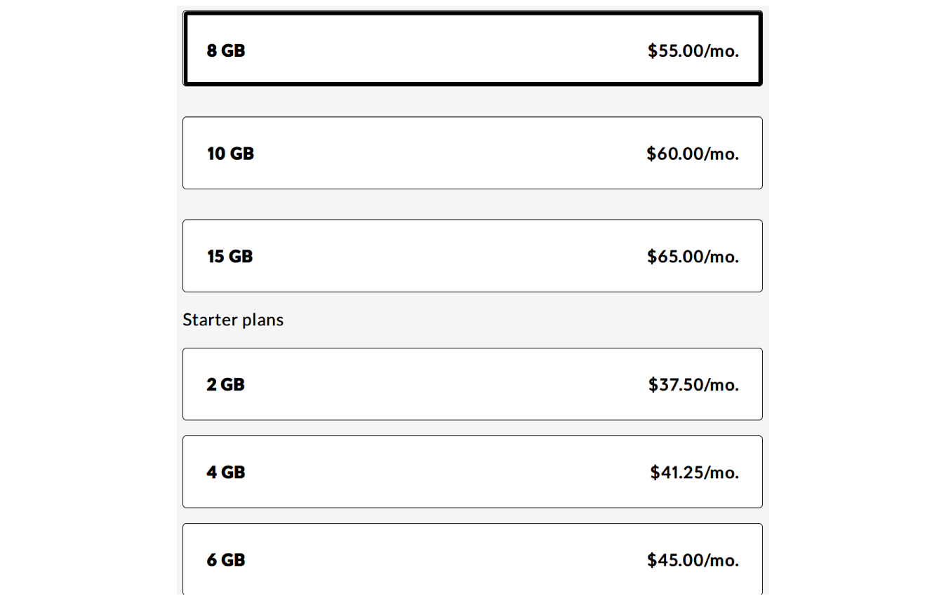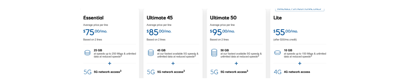可以看到安省提供5G网络的套餐,在75加币起;最便宜的55加币套餐,仅提供4G服务。