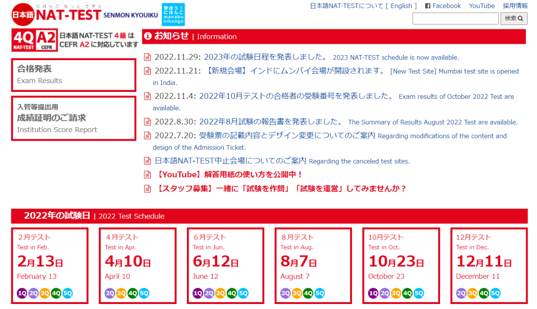 NAT-TEST是由日本专门教育出版创立和主办的检验非日本语母语者能力考试。与JLPT的出题标准、命题形式以及考试级别和难度基本相同,只是考试主办方和考试次数不同。