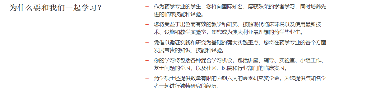 药学硕士是一个研究生课程学位,将为您准备药学专业的各个方面,包括创新和循证实践的领导能力。本课程的毕业生在完成 1824 小时(一年)的监督实践培训和实习培训计划后,将有资格在澳大利亚药房委员会注册。您将完成药学的核心单元,包括专业实践和体验安置,以及最后一个学期的顶点单元。