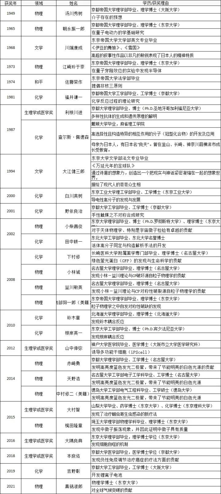 当然出过诺奖获得者的不止是上面这些学校,有一部分诺贝尔奖获得者,本科和博士不是毕业于同一所大学,例如2012年诺贝尔奖获得者山中申弥,本科毕业于神户大学医学院,博士毕业于大阪市立大学医学研究科。还有大阪大学、东京理科大学。具体学历和获奖理由看下图!
