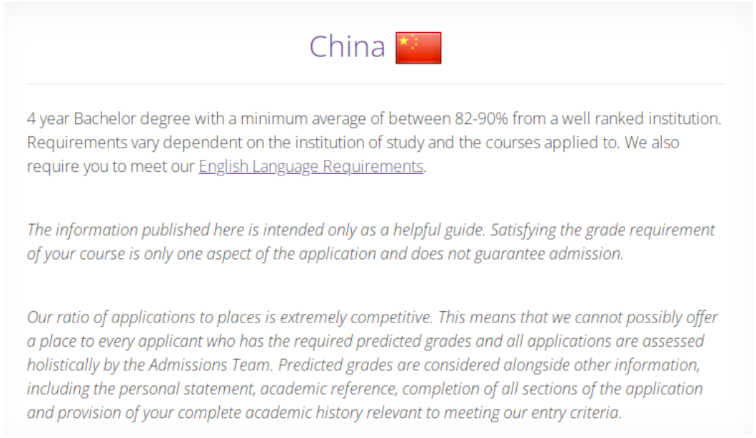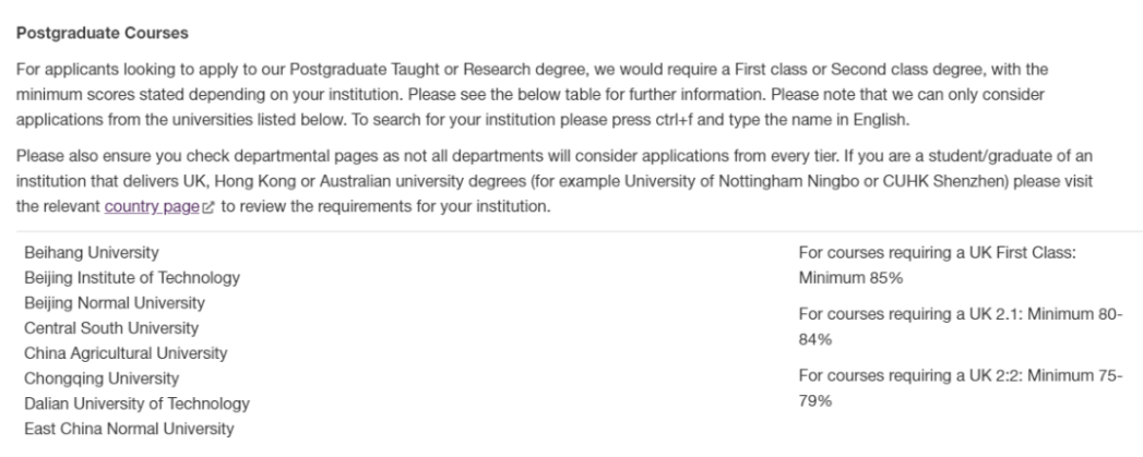 目前,QS排名前100的英国大学都有自己的List,不过大多数都属于卡了但又没完全卡的程度,除了商学院是真的很严卡以外, 在其他学院的非热门专业,还是对双非学生比较宽容的。