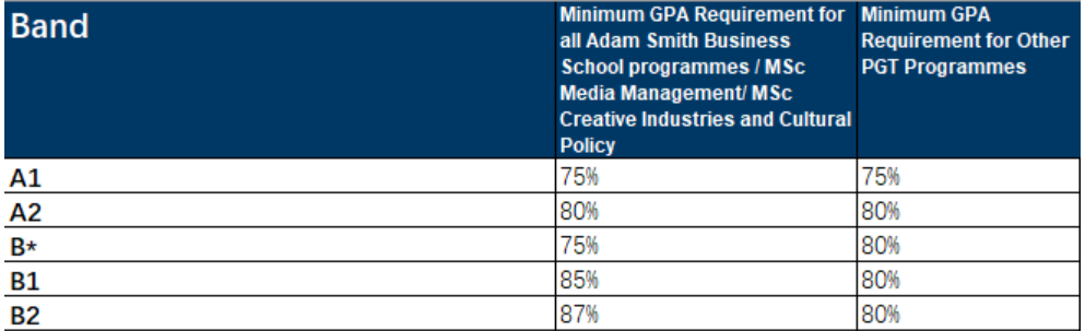 针对23fall,格拉斯哥大学发布了最新中国院校list及要求,将学校分为A1、A2、B*、B1、B2、C和D这七类。