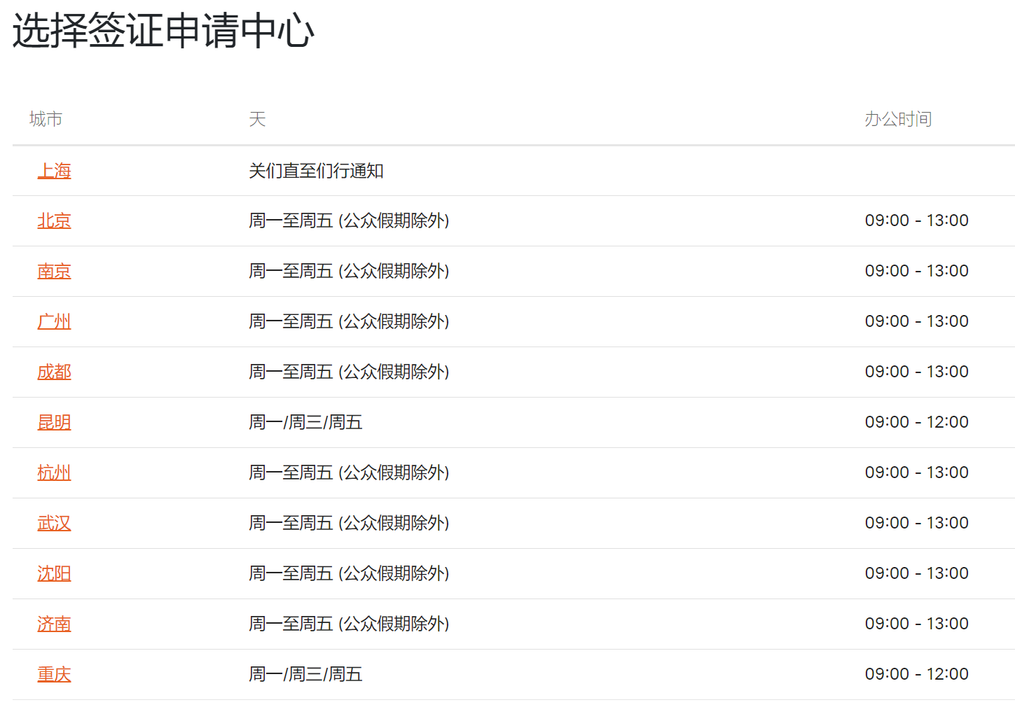 重要公告:签证申请中心有可能根据当地疫情防控要求在短时间内做出临时关闭的决定。除如下正常中心运营日及时间外,请务必参考置顶的通知。