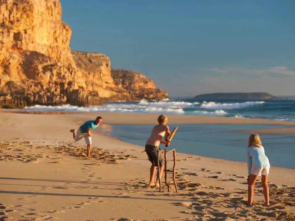 板球本就是澳大利亚的全民运动项目(尤在夏季受到欢迎),沙滩板球又集合了 喜欢的一切元素:阳光海滩、家庭同乐、开阔户外。难怪你总能在海滩边,邂逅三三两两在阳光下击球的英姿