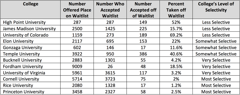 USNews对91所大学进行了调查,这些大学报告说,他们的waiting list录取率从0到100%不等。数据显示平均每5名被waiting list的学生中,有一名会最终获得录取。