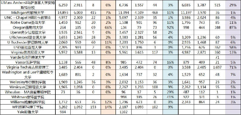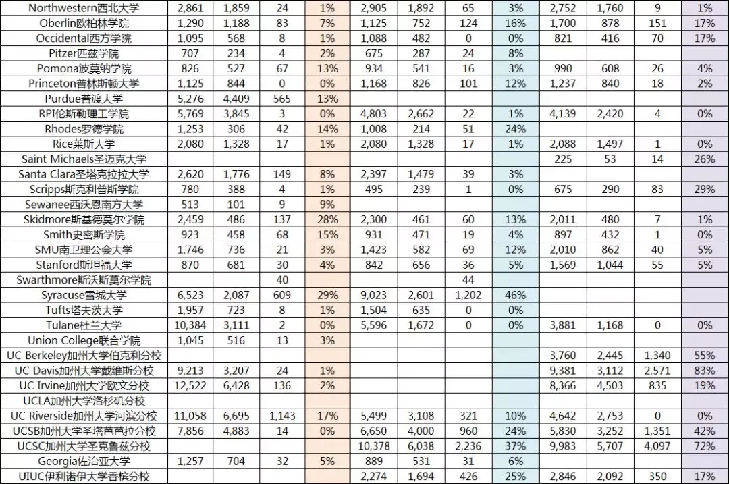 从数据图中可以看出,加州系学校的waitlist转正率比较高,比如:加州大学伯克利分校去年达到37%,加州大学河滨分校去年申请季的候补录取率也达到17%。