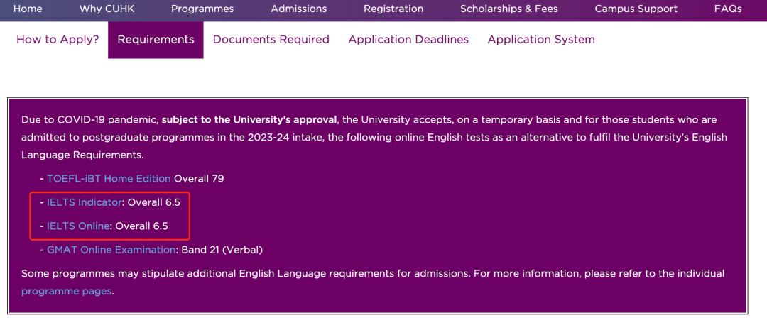 IELTS Indicator(雅思指标): 6.5分及以上;