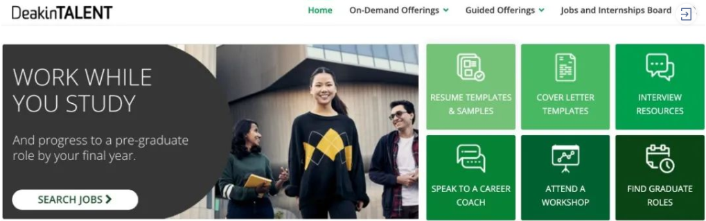 DeakinTALENT自由职业中心,坚持以人为本,为迪肯大学在校学生提供定制化的职业规划指导,注重学生职业技能培养,帮助学生搭建与雇主之间的桥梁,提供带薪实习与就业机会。