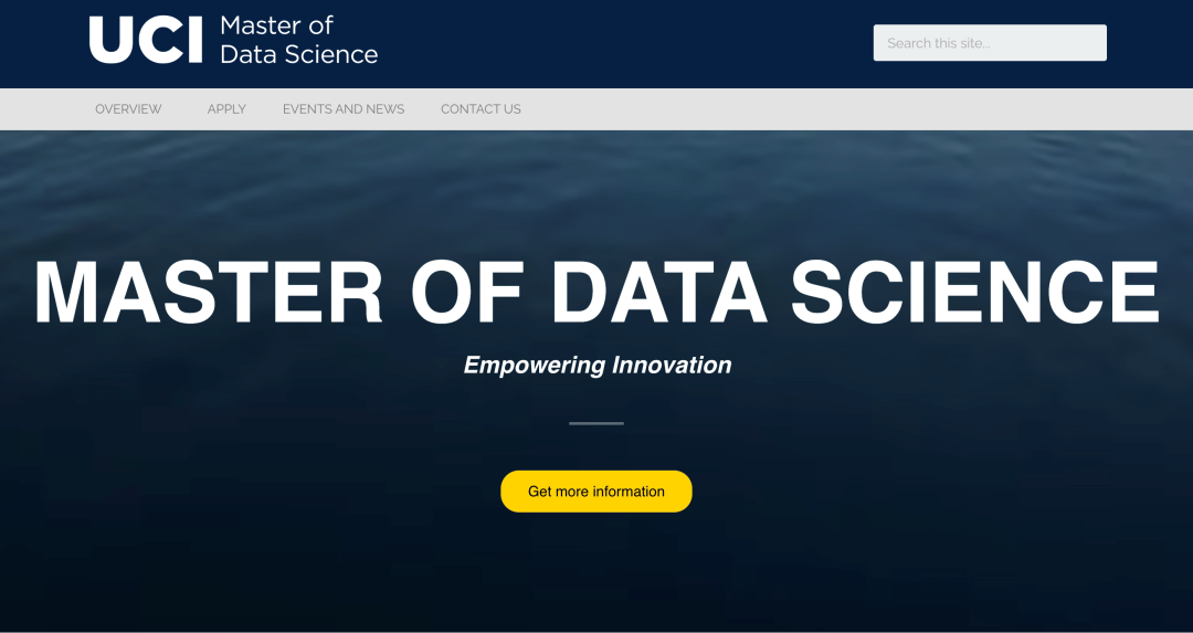 15个月全日制课程,跨学科教授(统计学和计算机科学),13门课程(10门必修和3门选修),50个学分。课程包括应用概率和数理统计、统计建模和计算、机器学习、数据管理和可视化以及人工智力。UCI MDS的独特之处在于提供实际处理问题的项目课程,学生将以4—6人的团队形式与行业公司合作开发真实的数据科学项目,利用公司专有数据为公司开发模型和见解。课程将会为学生提供宝贵的实习经历,对未来就业打下了很重要的基础。
