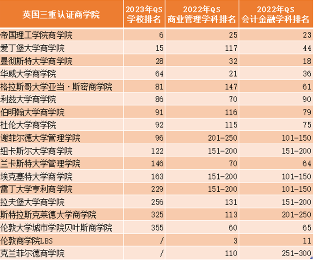 以下英国大学的商学院/管理学院获得了三重认证,老师同时整理了这些院校的商科专业排名,供大家参考。