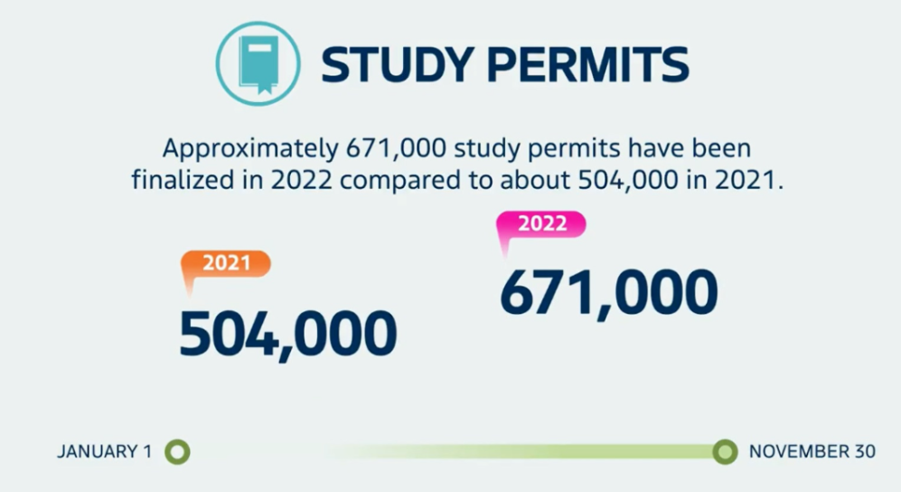 对于留学生学习签证的处理,加拿大今年有望创下新纪录。截至今年 11 月 30 日IRCC 已经处理了 671,000 份学签,而去年同期只有 504,000 份。移民部表示,现在大多数新的学签申请都能在 60 天服务标准时间内处理。