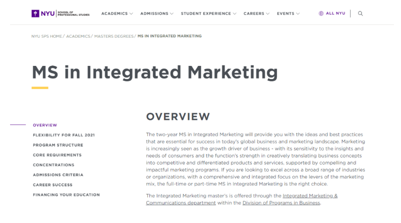 接下来看看纽大的MS in Integrated Marketing项目。