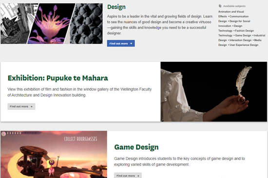 学校在设计专业上的设置可以说是正对口的,除了工业、交互、用户体验设计等之外,还有动画和视觉效果、游戏设计和设计技术( Design Technology )。 以设计技术专业作为例子,该专业主要就是围绕着视觉效果 (VFX) 、游戏设计、动画、扩展现实 (XR) 、动画、 3D 动态图形和多媒体进行的,在学校任教的也都是业内一线专业人士,甚至许多教职人员都是维塔数码出身。 而维塔数码与惠灵顿维多利亚如此深厚的渊源也给学生们带来了极大的福利,不仅提供讲座和参与项目实践的机会,还为设计技术专业专门设立有奖学金。