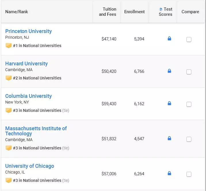 USNews 刚刚发布了2019年美国本科院校的排名,小编第一时间整理出了前100的榜单。本次排名冠军宝座仍然属于 普林斯顿大学 , 哈佛大学 第二, 哥伦比亚大学、MIT、芝加哥大学、耶鲁大学 并列第三! 斯坦福大学 今年第七名, 杜克 第八, 宾大 第八, 约翰霍普金斯 挺进前十!