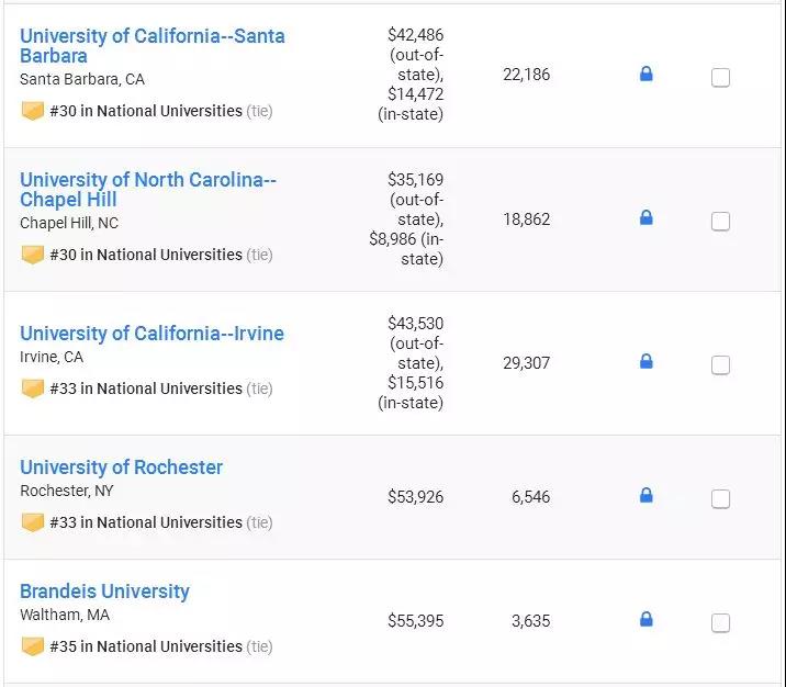 在今年的榜单中, UCLA 公立大学第一名,总排名19(想想2018年UCLA申请人数突破11万人,国际生录取率只有11%)。 UC Berkeley 这次排名22, UCSB 进前三十, UC Davis 进前四十。