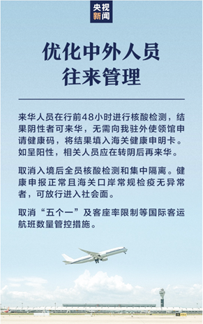 12 月 26 日晚间,国家卫健委发布《关于对新型冠状病毒感染实施“乙类乙管”的总体方案》,其中优化了中外人员往来管理,取消入境后全员核酸检测和集中隔离。