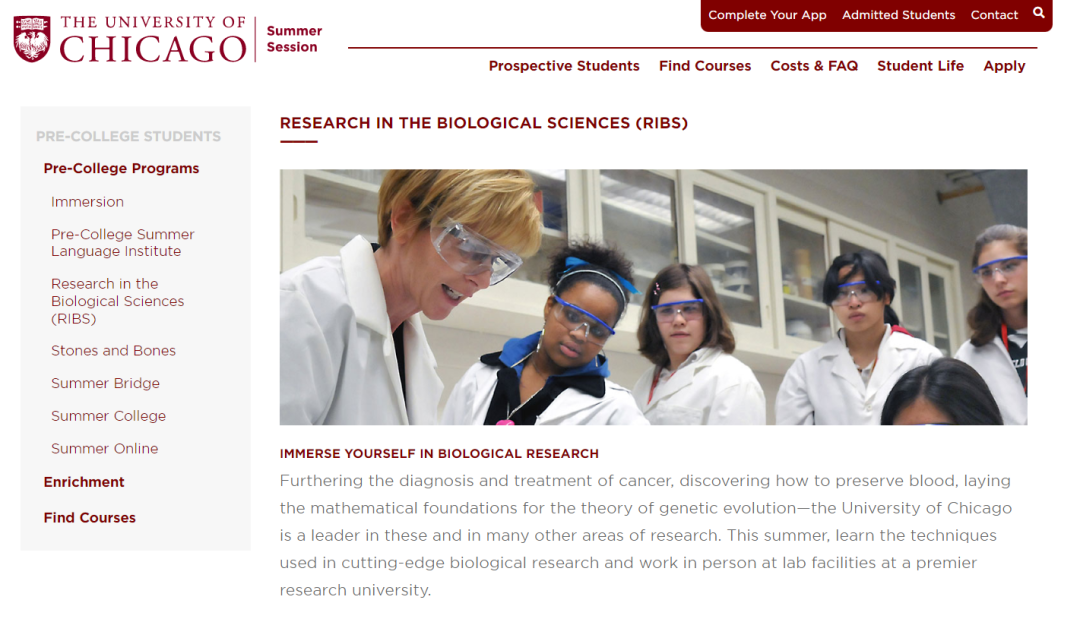 芝加哥大学暑期生物科研夏校(UChicago Research in the Biological Sciences)旨在让学生接触到目前广泛用于实验室的分子和细胞生物技术。