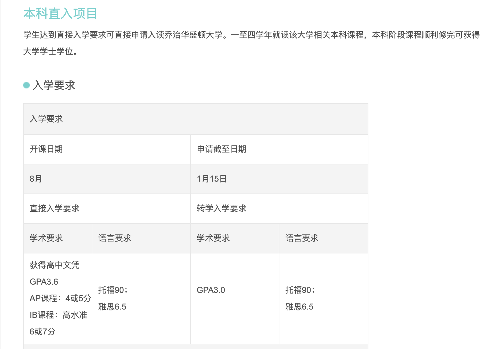 学生达到直接入学要求可直接申请入读乔治华盛顿大学。一至四学年就读该大学相关本科课程,本科阶段课程顺利修完可获得大学学士学位。