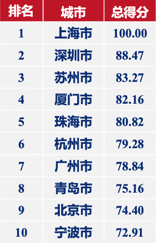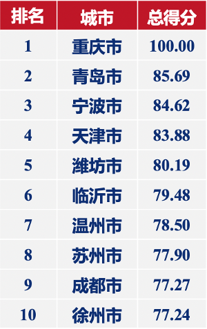 从所属区域来看,排名前50的城市中34个来自东部地区,中部地区和西部地区均以7个城市入选前50,东北地区有2个城市入选前50,分别为沈阳市和大连市。