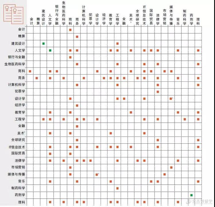 图片源自最新的《2019年蒙纳士中文版课程介绍》,所有橙色的标注代表着这两个本科专业可以进行双学位课程的搭配,绿色的标注则代表本硕连读课程。