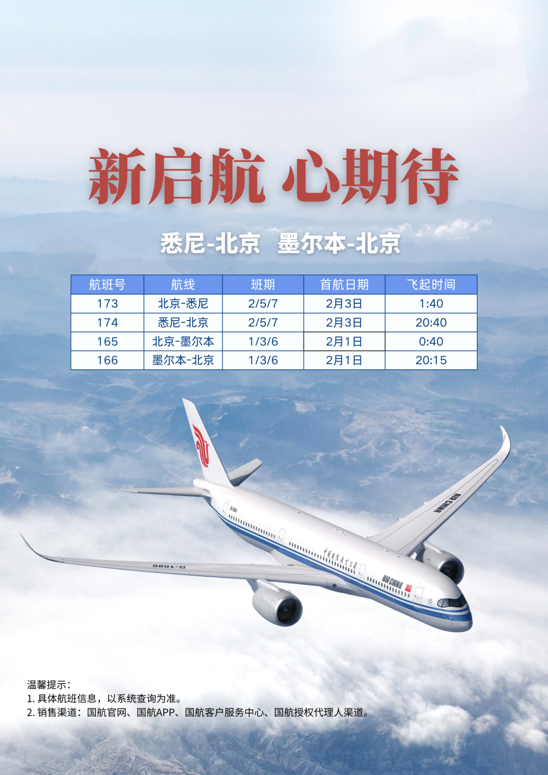 1月25日起恢复墨尔本/悉尼-广州往返航线的运行