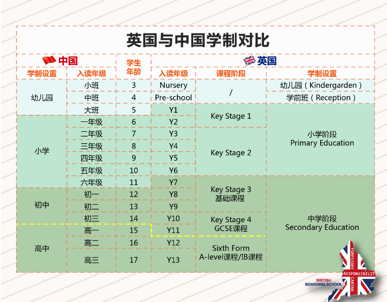 希望通过对照国内中学教育阶段的划分,可以帮助家长理清英国中学教育学制问题。